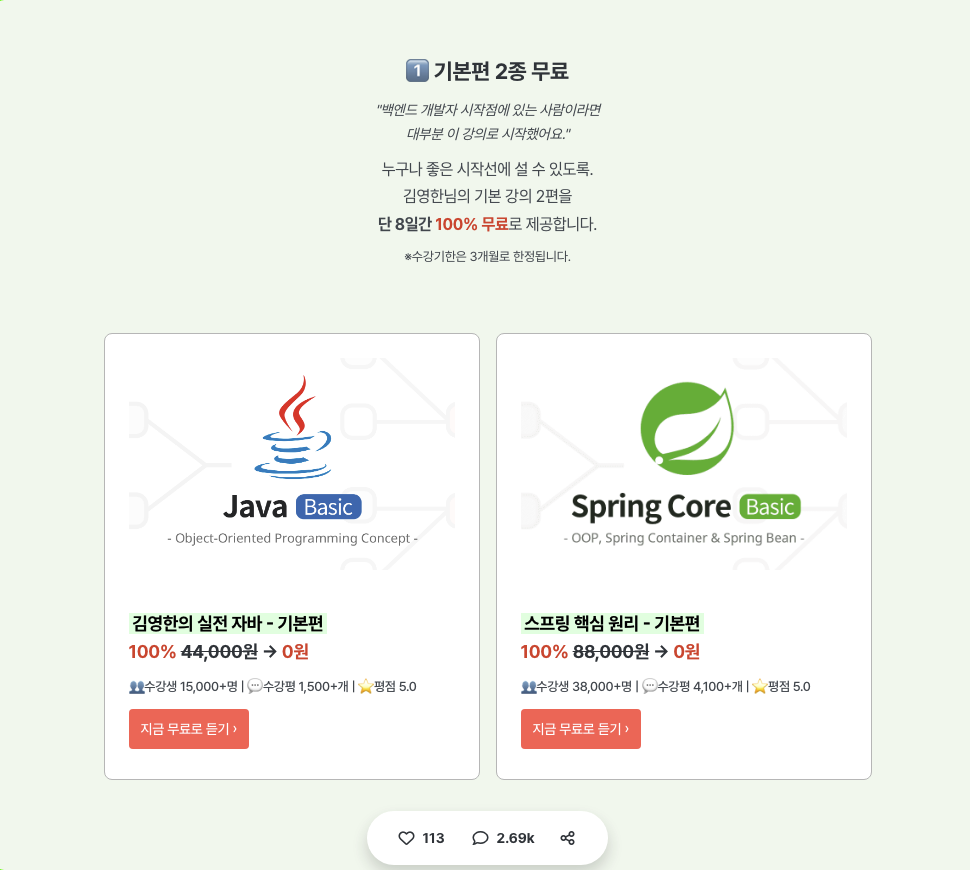 제가 스프링 입문자라면 이걸로 공부하겠습니다.